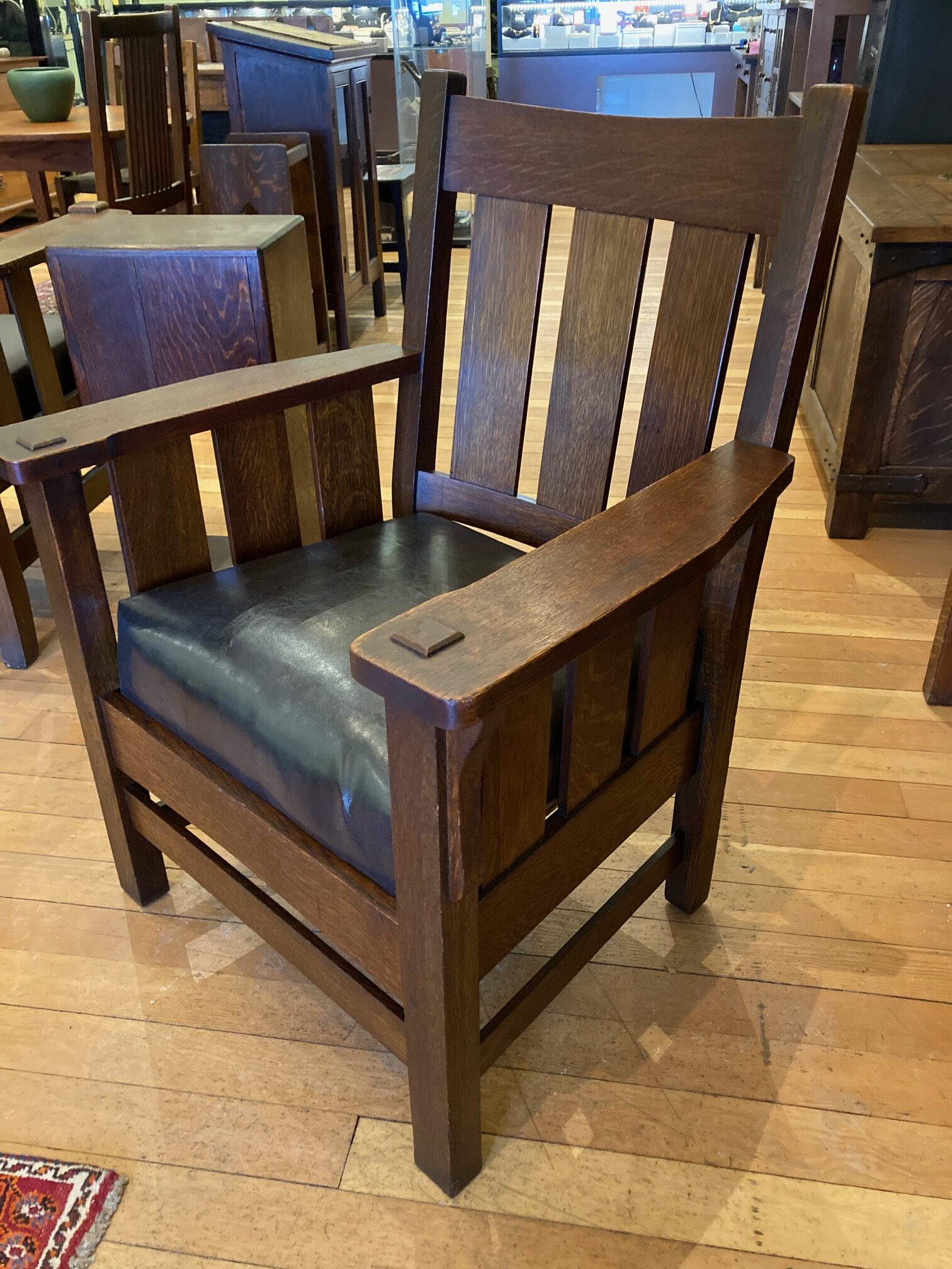 Very good Lifetime Furniture Company armchair. Good design with slats under the arm. Solid chair with nice original finish. Signed.